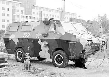 图为杨树宽经常“巡逻”的“军用装备”装甲车(资料图片)