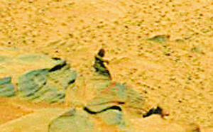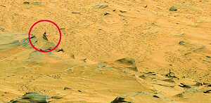 但是,太空观测者们对“勇气”号和“机遇”号没有捕捉到任何“外星人”的照片一直感到很失望,不过,太空迷们仍不死心,一些太空迷对这些NASA火星照片的每一块石头和每一处沟壑都进行仔细研究后,竟然在一处火星山坡上发现了一个猿状“火星人”的黑色身影!