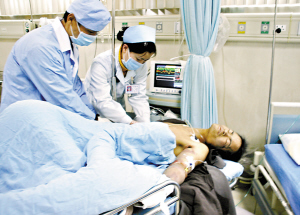 随后记者来到沙田医院抢救室看到,多名医护人员正在对该男子实施抢救。