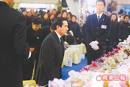马英九在公祭时罕见地双膝下跪、行三叩首大礼。