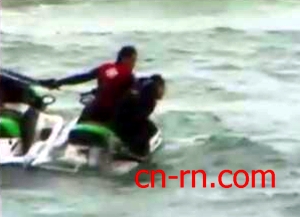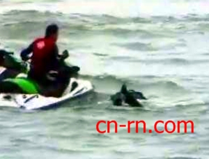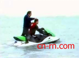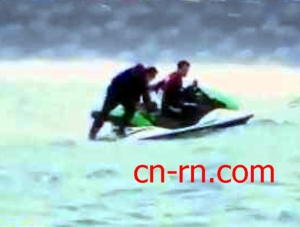 王世坚乘水上摩托车出海。