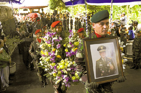 苏西洛说:“我代表国家和印度尼西亚军方,把穆罕默德·苏哈托的遗体和灵魂交还给祖国的土壤。”
