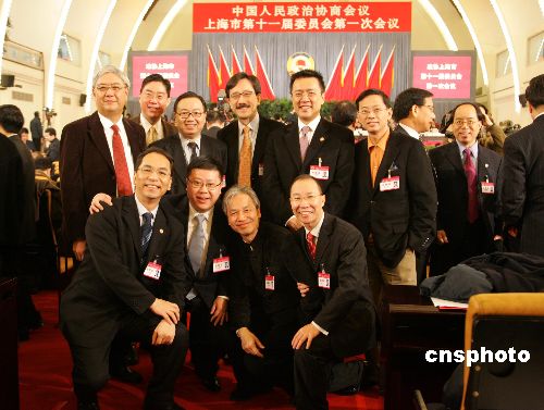 一月二十八日,政协上海市十一届一次会议闭幕,港澳委员合影留念。中新社发 潘索菲 摄