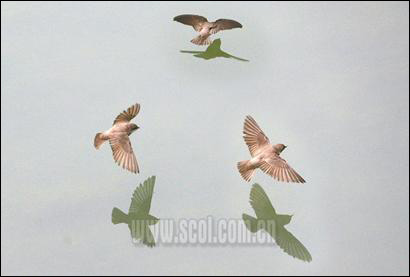 据了解,岩燕一般居住在峭壁之上,由于人们只看到它们无休无止地在空中飞翔,而看不到它们的栖息地,才有了无足鸟的别名和一段段美丽传说。在我国,岩燕分布在新疆、青海、甘肃、宁夏、内蒙古、四川、西藏、云南、山西、河北和辽宁等地,主要以昆虫为食。 (记者 秦勤 摄影 谭曦)