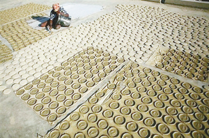 把制成的泥饼晒干
