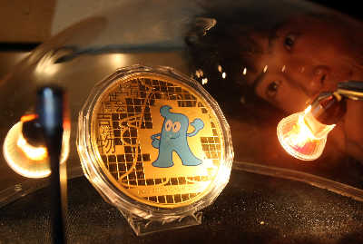 昨日,2010年上海世博会吉祥物纪念章正式和公众见面。早报记者王炬亮图