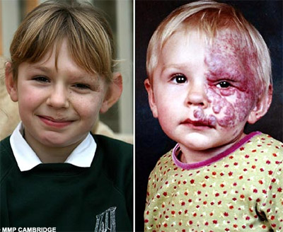 [独家]英女孩"阴阳脸" 半边脸长血管瘤(图)
