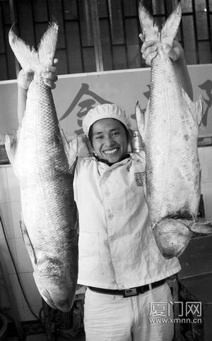 张先生介绍,闽南一直有“一午二红鲨,三鲳四马鲛”之说。这是因为以前捕鱼技术不太发达,能用渔网打到的鱼,就数午鱼最好吃,所以叫“一午”。后来,随着人们捕鱼能力增强,午鱼就不再是人们心目中最好吃的鱼了,但由于它数量比较稀少,至今还不能养殖,所以还是属于很珍贵的鱼。张先生介绍,大午鱼主要生长在近海的淡咸水交界的水域。(黄晓珍 文/图)
