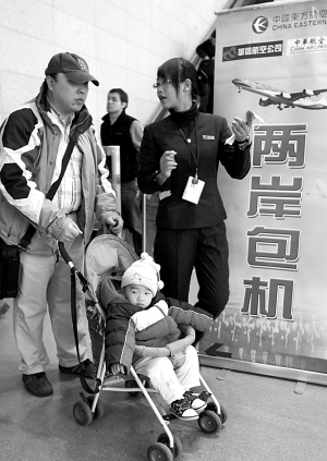 2月2日,工作人员正在引导包机旅客登机。当天,两岸春节包机首航,共有4个往返航班,除了海南航空的HU7987/8航班在北京与台北之间往返外,东方航空的MU5005/6、MU5007/8航班以及上海航空的FM801/2航班都将在上海与台北间完成往返。新华社发