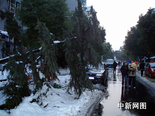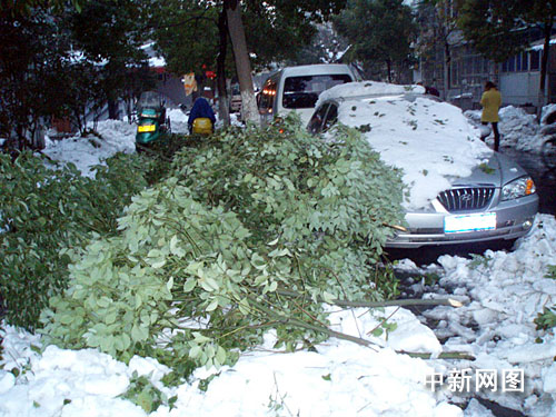 杭州天目山路上的不少行道树香樟因积雪过多出现了严重的弯枝和断枝情况,莫干山路湖墅公园附近有棵香樟,直径约四十厘米,被厚厚的积雪压得拦腰折断。