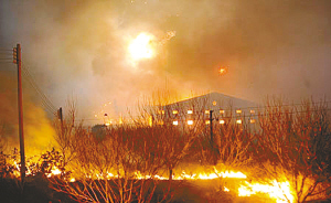 爆炸导致山林大火