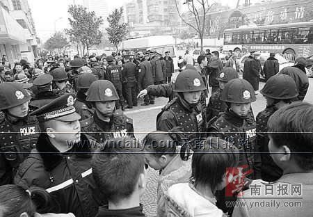 场面一度混乱,警方增派防暴警察