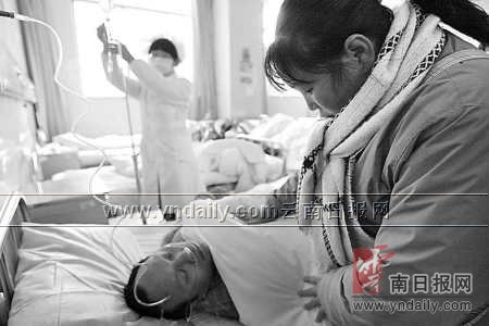 李贤友的妻子张丽在延安医院急诊科看护丈夫,她说,丈夫曾经脑部受伤,膝下有3个子女,1992年来昆明后,就一直做米线生意。“约莫10点,接到妹妹电话说我老公被打伤,我就打车赶了过去,看到他躺地没人管,最后在围观群众要求下,另一辆城管人员车辆才将我老公送到了一个诊所,由于老公一直不说话,加之诊所又没有CT,最后被城管送到延安医院,办事处的人来看过,还交了CT照片费,我希望他们能把我老公医好!”