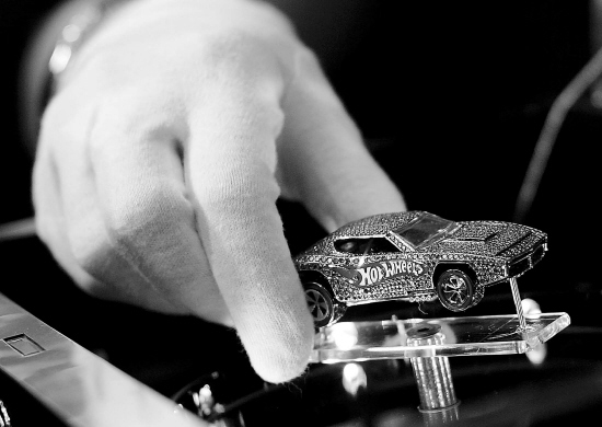 2月15日,一辆以1:64的比例制作而成的钻石跑车亮相风火轮(HotWheels)在美国纽约举行的40周年庆典游行上。该钻石跑车由著名珠宝设计师Jason Arasheben 设计而成,用在小车上的钻石约有2700多颗,总量达23克拉,单钻石的价值就达14万美元。这辆只此一件的汽车模型是“风火轮”品牌历史上最昂贵的产品,用以纪念该品牌车模生产量到达40亿辆。