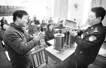 为了让“学员”学到位,张建新可是使出了浑身解数,每个月四五次的集中授课,针对当前最突出的治安隐患讲点跟老百姓生活息息相关的事儿,课堂上讲完就提问,答的不对大家纠正;拍点简单的教育片,课堂上放给“学员”看看,同时警务室里也循环播放着,谁来办个登记什么的,也能学习一下;每隔一段时间搞一次“迎奥运保安全防范知识竞赛”,谁答对了都能得到香皂、洗衣粉等类的小奖品;平时没时间搞集体活动,就发点宣传材料,同时配发一份问答题,回答得好的,也能得点奖品。