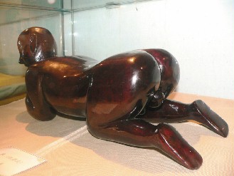 卧婴式木枕男娃娃,刻有男性生殖器,有早生贵子之意。