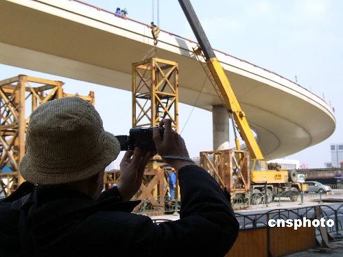 自从有着“亚洲第一弯”美称的延安东路高架外滩下匝道拆除作业进入倒计时开始,每天都有许多市民兴致勃勃地背着照相器材去记录拍照。中新社发 井韦 摄