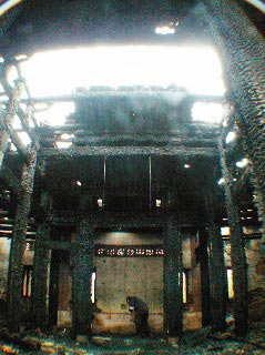 台北县芦洲百年秀才厝疑遭纵火 大厅付之一炬(图)