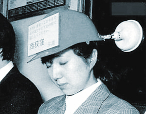 整日来去匆忙、工作辛苦的上班族们,总是希望在乘地铁等公共交通工具上下班时,能在车上美美地打一会盹。为了解决站着也能打盹的问题,有研究者发明出了一种“乘客头盔”,这种头盔上装有一个吸力杯,它可以将头盔牢牢地吸附在车厢玻璃窗户上,这样乘客戴着这种头盔乘车时,即使打瞌睡也不用担心会撞到别人身上,因为紧紧吸附在车窗上的头盔会一直让他保持笔直站立的状态。