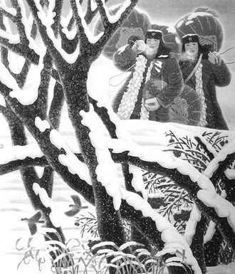 城前岭的7、8号塔头被冰凝扭曲了,需要重新更换,而通往7号塔的小路早已被断落倒塌的树木覆盖。山中无路,需要迂回两公里多山坡,才能送上去。满山遍野是被冰凝围裹的玉树翠竹,如果在平时,的确另有一方自然奇观供人欣赏,可此时官兵们早已没有了赏良辰美景的雅兴,透过泥泞的山野,艰难地将塔材手抬肩扛地运到城前岭上。