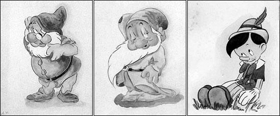 挪威北部一战争博物馆馆长威廉姆·哈克瓦格称,他是在一个签名为希特勒的绘画作品的背后发现这些卡通人物像的,他在德国的一个拍卖会上买下了那幅希特勒的绘画作品。他发现了迪斯尼1937年电影《白雪公主》人物“万事通”和“害羞鬼”的卡通人像图,图上有希特勒的签名,另外一张“匹诺曹”的素描则没有签名。“匹诺曹”曾在一部1940年的迪斯尼电影中出现。