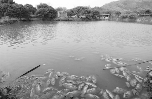 “别去了,太臭!”当记者提出去其他雨塘看看时,苏志诚拒绝了。据称,由于死鱼没有捞出来,都在鱼塘里腐烂变臭了,恶臭叫人无法忍受。记者看到,两个雨塘的四围漂浮着不少死鱼,由于没有及时打捞出来,死鱼身上都长“毛”了。