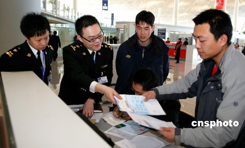 北京首都机场T3航站楼将于2月29日正式启用,目前入驻T3航站楼的海关工作人员已经到位。为便于旅客出行,T3航站楼采用开放式出港值机大厅模式,海关监管模式与以往不同,提醒所有乘坐国际航班的旅客在通关时注意以下相关事宜:无申报物品选择“绿色通道”通关的旅客,不再要求填写《申报单》;对有申报物品选择“红色通道”通关的旅客,则要求必须填写《申报单》,向海关申报。中新社发 雷虹 摄