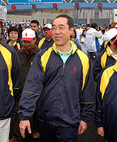 香港政务司司长唐英年2月24日主持8号干线第1期工程竣工揭幕仪式,和2007-2008新界区百万行开步礼后,带领队伍启步。(图片来源:香港特区政府网站)