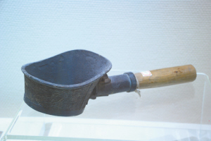 一个类似现代舀水勺子的铜制工具,却赫然标注着“火熨斗”三个字,它和现代的电熨斗又有什么关系呢?莫非是电熨斗的前身?据陆大雄介绍,“火熨斗就是清代用来整烫衣服的,在这个斗里面装上炭,一加热,底下不就热了吗?在没有电的情况下,人们就用这种方式来烫衣服。”