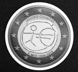 新华社上午电欧洲联盟委员会25日宣布,经过网上投票,一幅象征欧洲贸易与货币演变的原始风格图案将登上2009年版2欧元硬币,以纪念欧洲货币联盟成立10周年。