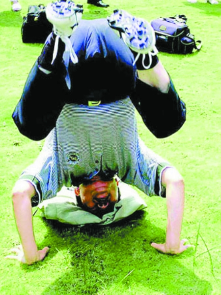 商报讯 台湾一家媒体日前选登一组资料图片,以“漏网镜头”为名展示了2008年台湾地区领导人选举候选人马英九和谢长廷鲜为人知的一面,其中关于马英九的有秀胸肌、与女性选民隔树吻等画面。关于谢长廷的有脸涂迷彩、玩倒立等画面。 (据《东南快报》)