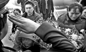 到重庆办事的北京乘客刘先生走下飞机之后,始终站在迎接周波骨灰的人群之外,目送着周波的骨灰踏上回乡之路。刘先生说,“我为能踏上烈士故乡的土地感到自豪。”