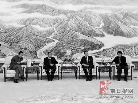 省委常委、常务副省长罗正富与人民大会堂管理局领导在装饰一新的云南厅里通讯员 高伟/摄