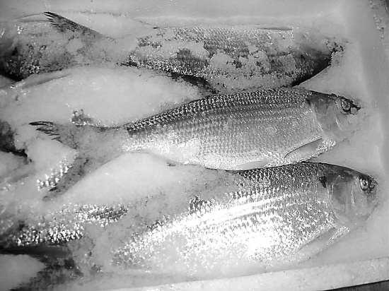 鲥鱼、长江刀鱼、河豚并称“长江三鲜”,相比长江刀鱼,鲥鱼更为少见。水产经营户称,南京市场上正宗长江鲥鱼已经绝迹10余年。据这家水产经营户老板朱发兵介绍,他在靖江一带收购长江刀鱼时,从渔民手中意外发现6条鲥鱼。从渔民口中得知,这6条鲥鱼是在长江入海口附近捕捞上来的,每条重约1公斤,全是扁平身体,背部呈黑绿色,全身晶莹透亮。他随后全部收购,运来南京销售。