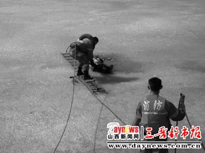 汾河冰面冻住一具女尸(图)
