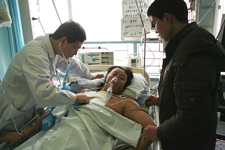 昨日,在重症监护室,记者见到了廖春燕,她脸上并没有死里逃生的欣喜,反而有种浓重的忧郁。廖春燕紧紧抓住丈夫的手,她的手掌比丈夫大了许多,手指关节显得比较粗大。在她的示意下,丈夫将耳朵凑在她唇边,夫妻俩低声交谈片刻后,丈夫神色黯然面对我们说,“她想放弃,她不想浪费那么多钱。”