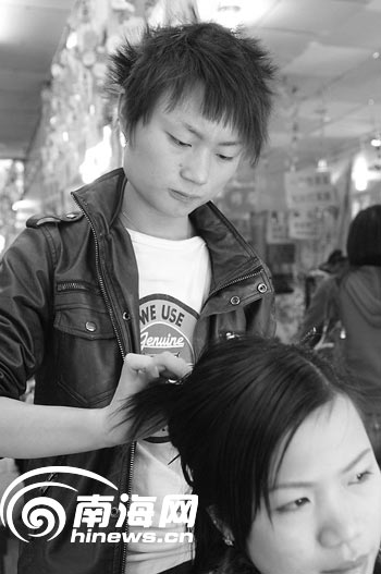 太多的“闭门羹”让田洋再一次心灰意冷,还没有开始证明自己的实力,就因为其貌不扬被拒绝了。后来他终于在深圳九龙城英子专业彩妆做老师,有了这个平台之后,他在形象设计方面的天分渐渐得到体现。今年年初,他只身一人来到海南闯荡,如今在第一百货一楼的一家彩妆店里做形象设计,现在也是常客如织。