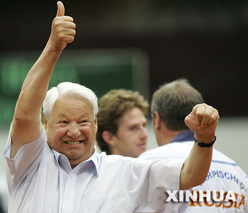 俄罗斯克里姆林宫发言人4月23日说,俄前总统叶利钦已经逝世。这是2005年7月17日,超级网球迷、俄罗斯前总统叶利钦在莫斯科俄罗斯队获胜后向选手们祝贺。 新华社发