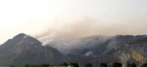 记者通过消防部门了解到,在昨日清晨和昨日下午4时许,参与灭火的近千人队伍曾经两度基本控制了火势(下图),并在下午开展了火场清理工作。但由于火点众多,加之连续的干旱和海洋吹来的大风使得山火再次复燃。