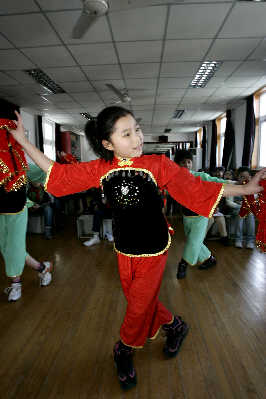 据苏虹介绍,该校一直以来可谓是“学唱京剧总动员”。早几年,学校已经有自编教材《京韵入门》,所以每个班每个星期都会有一堂专门的“京韵入门”课。课堂上系统地教学生“唱、念、做、打”,“生、旦、净、丑”等基本常识,老师也会给孩子们欣赏《穷人的孩子早当家》、《都有一颗红亮的心》等经典京剧唱段。到一定进度后,再教孩子们学唱一些简单的唱段。