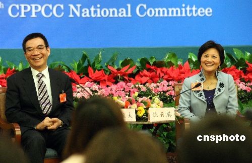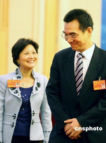 3月7日上午,首对台湾省籍全国人大代表林毅夫与夫人陈云英,亮相北京“两会”新闻中心,就经济、两岸关系等热点问题接受媒体记者采访。陈云英是人大台湾省代表团成员。著名经济学家林毅夫任北京大学中国经济研究中心主任、全国工商联副主席,是第三世界科学院院士,两会后将赴任世界银行副行长兼首席经济学家。中新社发 张宇 摄