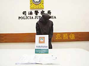 港人在澳门的犯罪率有上升趋势。图为去年一名港人在澳门行骗被捕。文汇报图