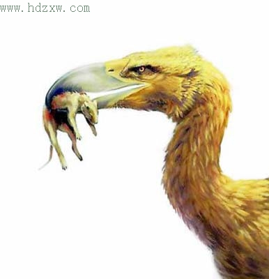 光听名字就知道它很可怕。这是一种食肉鸟,不会飞,个头大,是有史以来最大的鸟,产自美洲。马克非说:“恐鸟生活在4000万年前,从那之后,欧洲便没有恐鸟类动物了。”因此,恐鸟不会存在于影片描述的时代。