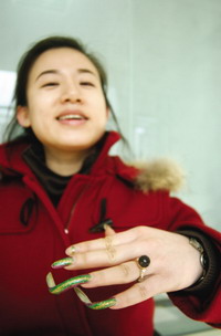 于茜说,多亏父母开明,又很宠自己,平时不让自己做家务,外衣一般都是母亲帮忙洗,而且现在工作的强度也很小,基本上一只右手就能应付。如果将来有了男朋友,对方家长看不惯她的长指甲,她会忍痛割爱,毕竟生活不只有美,还需要务实。于茜现在只有一个心愿,希望自己能成为“手模”或者有专业人士帮她拍下长指甲,作为永久的纪念。