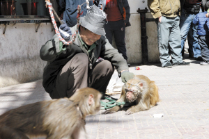 耍猴人当街“虐猴”(图)