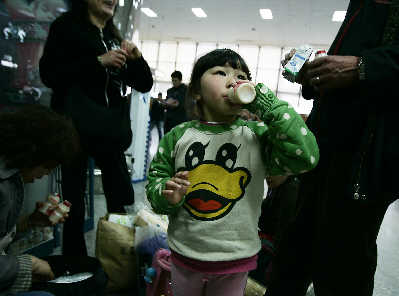 昨日,几名旅客在虹桥机场安检口前,喝光原本准备随身带上飞机的饮料。图片早报记者鲁海涛