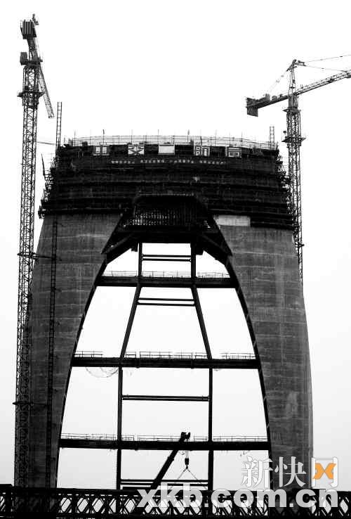 新快报讯(记者 张薇 廖颖谊 通讯员 史剑 市建投)昨日上午约11时,被喻为“珠江之贝”的猎德大桥主桥索塔成功封顶。