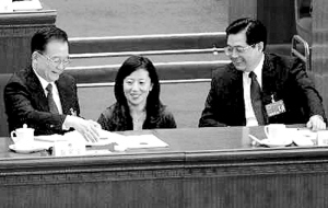 国家领导人成为追“星”对象成了本次“两会”上的新现象。3月15日,一组题为“两会第一现场:胡主席被‘追星’”的照片成为网络上的人气热帖。照片上,几位人大代表请胡锦涛主席和温家宝总理签名。