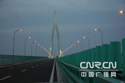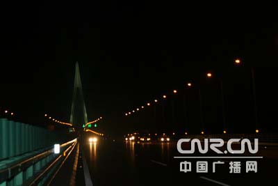 杭州湾跨海大桥昨晚亮灯 照明工程调试结束