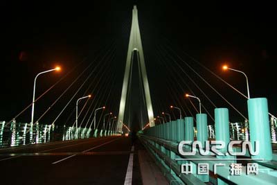 中广网宁波3月21日消息(记者焦健 曹美丽)3月20日晚,世界上最长的跨海大桥——杭州湾跨海大桥上灯火辉煌,犹如一条巨大的火龙蜿蜒在大海上。至此,杭州湾跨海大桥照明工程全线调试结束,并标志着杭州湾跨海大桥后续工程有取得重大进展。